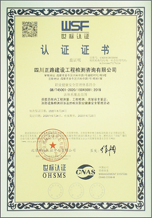 ISO45001职业健康安全管理体系认证证书